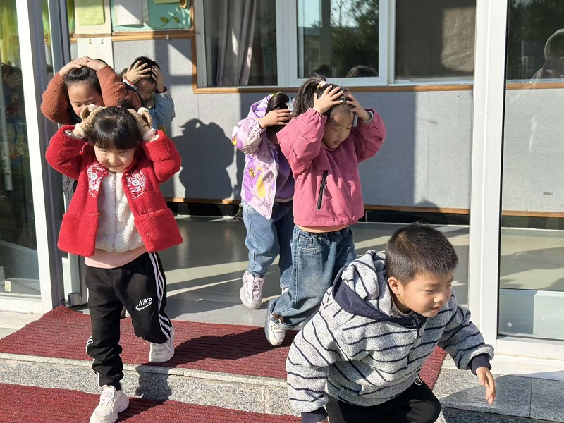 演习前,各班老师通过生动的动画、趣味儿歌和情景模拟,向孩子们讲解了地震的基本常识,以及“双手护头、弯腰躲避、快速疏散”的核心动作要领,让抽象的安全知识变成孩子们能理解、会操作的小技能,帮助孩子们以轻松有趣的方式掌握地震应对技能。