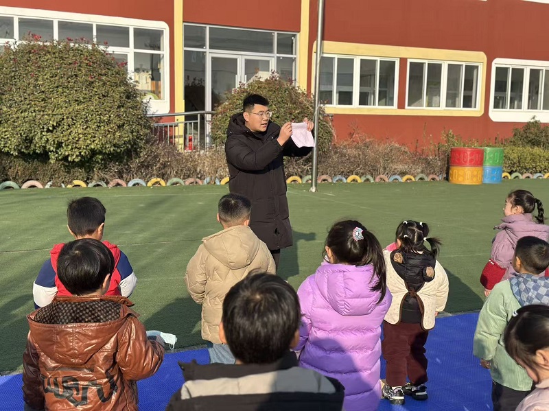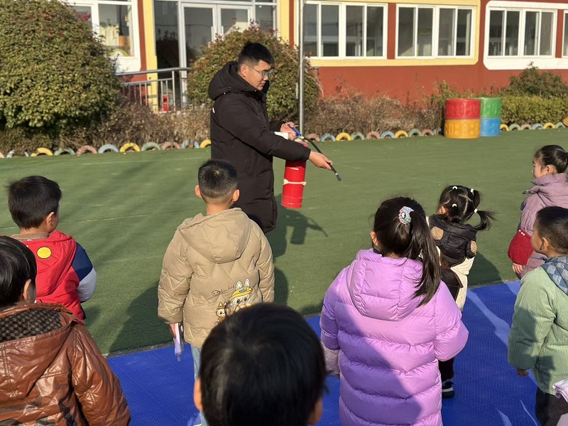 随后,周捷主任为全体师幼开展了消防安全知识宣讲。结合幼儿的认知特点,用生动易懂的语言讲解了火灾的危害、常见火灾隐患、湿毛巾的叠法以及灭火器的正确使用方法。提醒孩子们,在家中要远离火源,不玩火、不随意触碰电器,遇到火灾要及时拨打“119”报警电话。